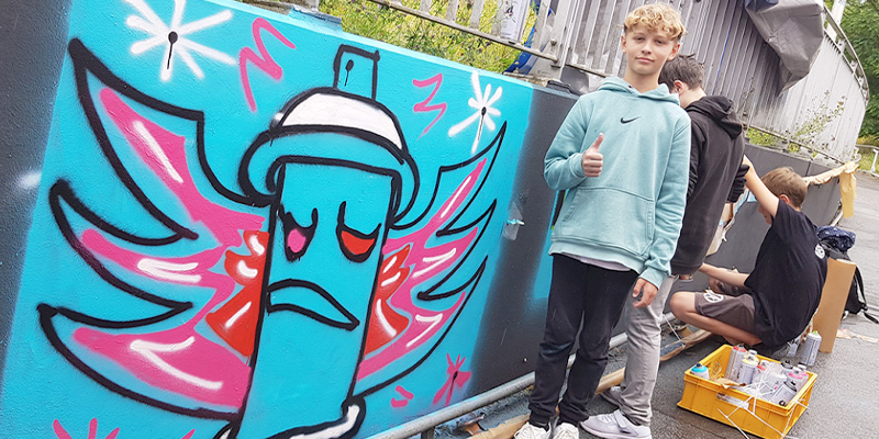 Bunt, voller Tatendrang und mit viel Kreativität - so zeigte sich die Kunst AG unserer Oberschule Neuenhagen bei der S5-Action am S-Bahnhof Neuenhagen. Unter der Regie von Frau Biela zeigten die Nachwuchskünstler der 7. Klassen welch Ideenreichtum in ihnen steckt. Von kreativen Einzelprojekten bis schulbezogenen Gemeinschaftswerken war alles mit dabei und das Beste ist: Jeder verewigte seine Handschrift an der Wand zum Bahnsteig!